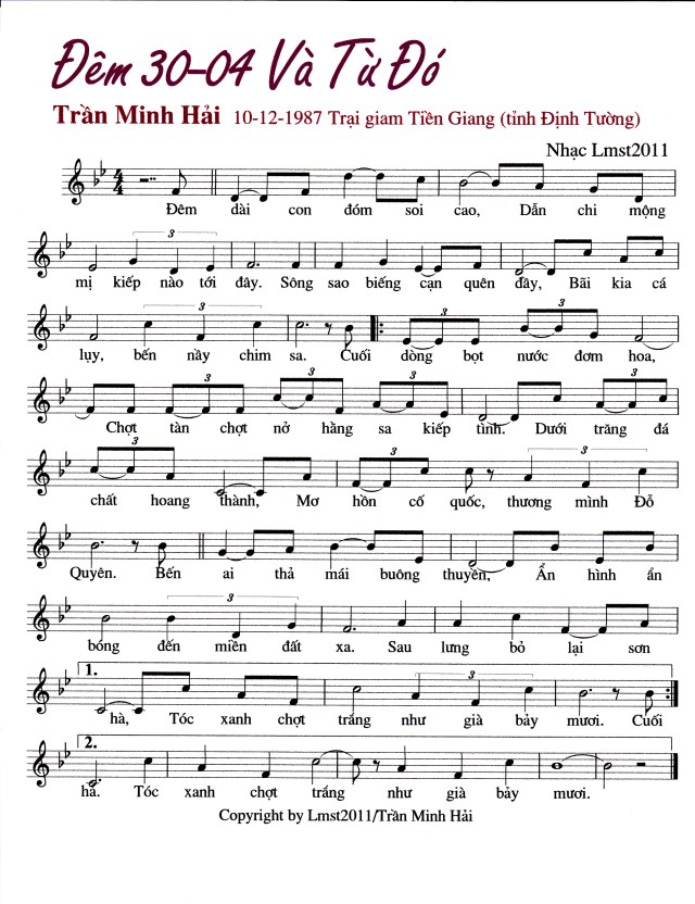 Các bạn có còn nhớ K1 Trần Minh Hải không. Mặc dù anhHải đã từ giả chúng ta từ lâu nhưng anh Hải còn để lại cho chúng ta nhiều sáng tác có giá trị. CNN xin giới thiệu đến quý niên trưởng và các bạn bài thơ “ 30 tháng 4 Và Từ Đó ” bài thơ nầy đã đươc một số bạn hữu phổ nhạc, nhưng rất tiếc CNN chưa hân hạnh có được phần ghi âm. Rất mong các ca nhạc sĩ K1 phối âm và trình bày bản nhạc nầy . Rất mong thay.