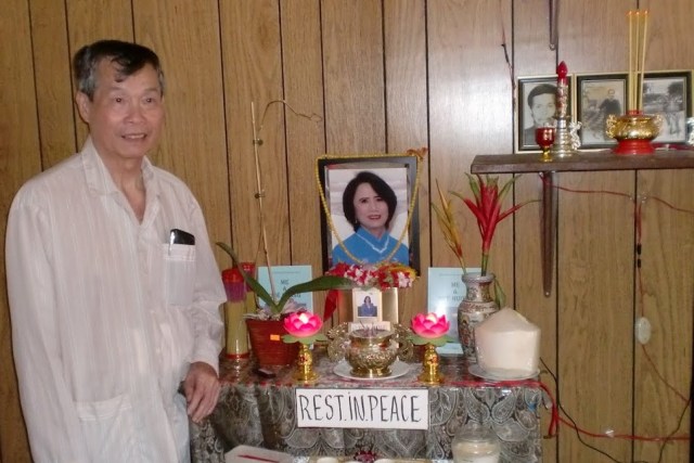 Trong thời gian Nguyễn hoài Ân ở tù cộng sản sau năm 1975, ngoài việc tần tảo nuôi hai con, chị Ân thường xuyên đi thăm nuôi chồng và tạo điều kiện cho Ân trốn trai. Lần đầu bị thất bại, lần thứ hai mới thành công rồi chị sắp xếp cho chồng vượt biên. Sau đó chị cũng dẫn hai đứa con vượt biên tiếp và đã đoàn tu trên vùng đất hứa Hoa Kỳ. Tại Hoa Kỳ, Nguyễn hoài Ân luôn bị bệnh nên một mình chị Ân lo cho hai ăn học, kết quả là một đứa ra Nha sĩ, đứa kia đậu Kỹ sư. Nhưng điều không may đã xảy ra các nay hơn một năm Nguyễn hoài Ân phải vào nhà thương vì bệnh bao tử và tiểu đường. Một lần nữa chị Ân lại phải vất vả lo cho chồng. Theo bạn Đinh văn Hạp cho biết thì trong thời gian nầy Hạp, Nghiệp có đến thăm và tưởng chừng Ân không thể sống trên cỏi đời nầy nữa vì sức khỏe của Ân rất kiệt quệ. Đùng một cái chị Ân bị phát hiện bị bệnh Ung thư phụ nữ. Chị vừa lo chữa bệnh cho mình vừa lo săn sóc cho chồng. Có lẽ thấy chị là một người vợ thủy chung, một người mẹ suốt đời chỉ biết lo cho chồng con, mà đau khỗ vẫn dồn dập đến với chị, nên ông Trời đã mang chị đi đến một chỗ an lành hơn không còn khổ đau nữa, như giòng chữ Nguyễn hoài Ân viết dán trên bàn thờ của vợ mình ” Rest In Peace“.
