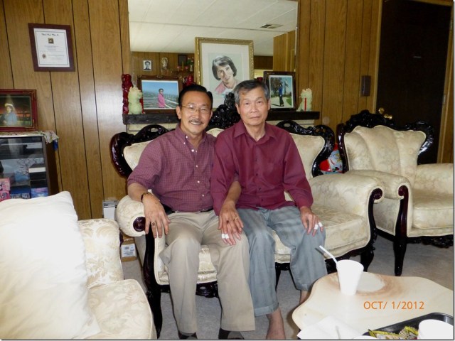Thưa quý vị, Nhân dịp từ San Diego lên San Jose thăm bà mẹ kế và các em tôi tại đây, trưa ngày 1 tháng 10-2012 tôi và Khôi, em trai tôi đã ghé thăm K1 Nguyễn Hoài Ân tại nhà của anh Ân. Tháng 4 năm 1970, anh Ân từ Phước Long, tôi thì từ Đà Lạt về thụ huấn bổ túc Khóa 4/70 SQTB Thủ Đức. Hai người chúng tôi cùng ở chung với nhau trong Đại Đội 45 Khóa Sinh. Chúng tôi ra trường cuối năm 1970. Sau đó thì đường ai nấy đi. Từ ngày đó đến giờ, tôi và anh Ân đã không có dịp gặp lại nhau. Hôm nay là đúng 42 năm chúng tôi gặp lại. Anh Ân còn trẻ ,khỏe và minh mẫn lắm mặc dù anh lớn hơn tôi đến 9 tuổi. Chỉ ngồi hàn huyên với nhau được có gần hai tiếng đồng hồ nhưng chúng tôi đã nhắc lại biết bao nhiêu là kỷ niệm vui buồn lúc còn đang thụ huấn trong Trường Bộ Binh Thủ Đức cũng như trong thời gian chúng tôi phục vụ trong ngành CSQG/VNCH. Anh Ân, thân chúc anh mau khoẻ lại một trăm phần trăm nhe .