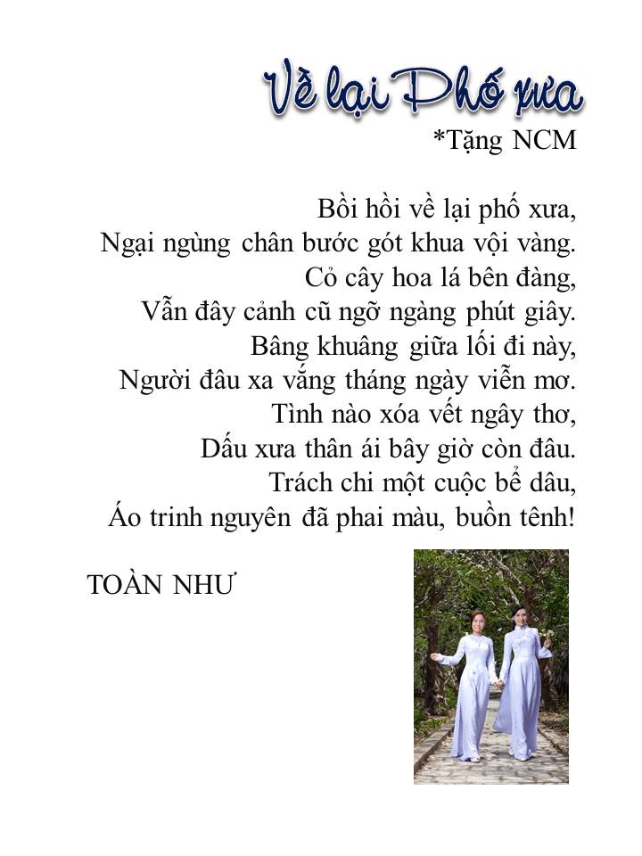 Đọc xong Ba Tuần Ở Việt Nam của NCM , Cóc Chát LHN cảm tác một bài Đường Thi nói lên tâm trạng bồi hồi,chua xót đớn đau, khi Ngươi Về cảm thấy lạc lỏng, bơ vơ, xa lạ ngay trên Quê Hương, ngay trên nhà cửa, ruộng vườn của mình.