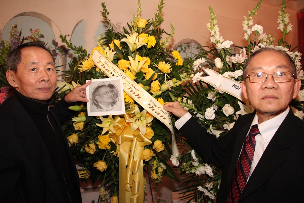 Chụp hình bên cạnh hình NT La Văn Chung và vòng hoa của Học Viện.