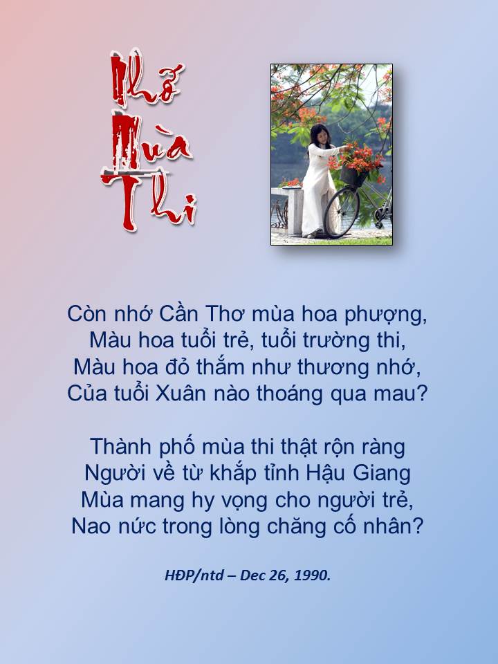 Đó là K1 Nguyễn Tấn Dược. CNN xin được giới thiệu một bài thơ nói về tuổi học trò rất dễ thương của anh. Bài thơ mang nhiều kỷ niệm của thời niên thiếu, nơi quê hương anh được sinh ra và lớn lên, nhưng giờ đây không còn nữa.