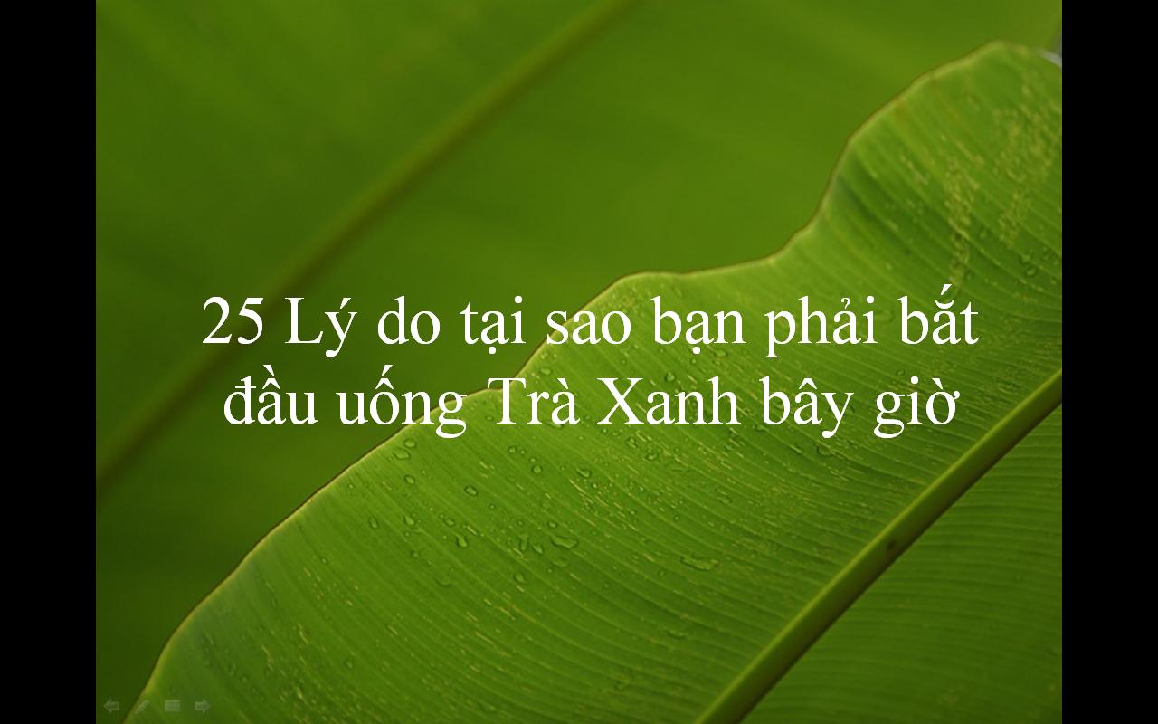 Trà xanh ngày càng trở thành một thức uống rất phổ biến trên toàn thế giới vì lợi ích sức khỏe vô cùng mạnh mẽ của nó. Những gì trà xanh có thể làm cho sức khỏe của bạn là cực kỳ tuyệt vời. Và nếu bạn không uống 3-4 tách trà xanh ngày hôm nay, bạn chắc chắn không chịu ban cho sức khỏe của bạn một đặc ân lớn. Dưới đây là 25 lý do tại sao bạn nên bắt đầu uống trà xanh ngay bây giờ: |