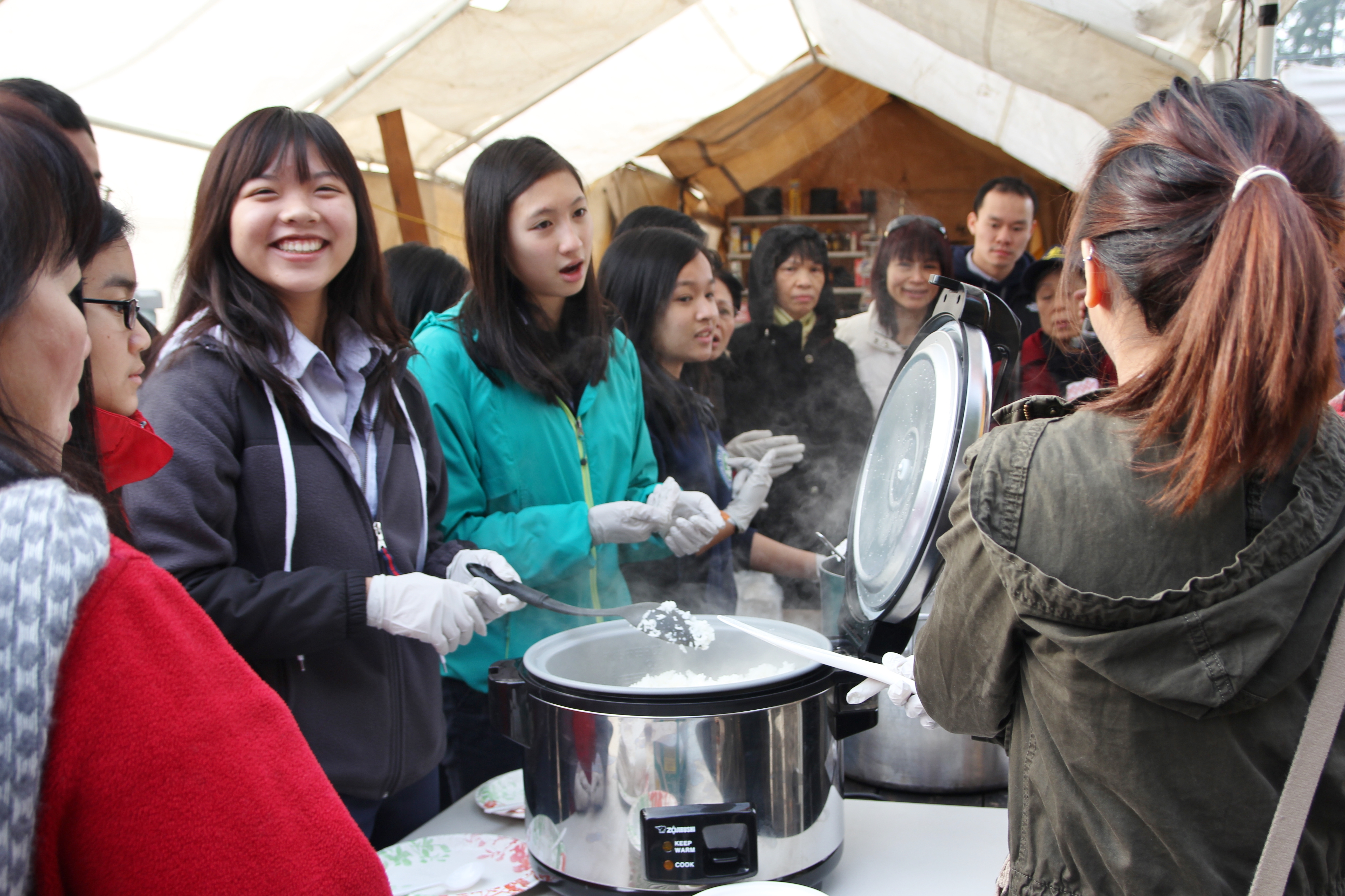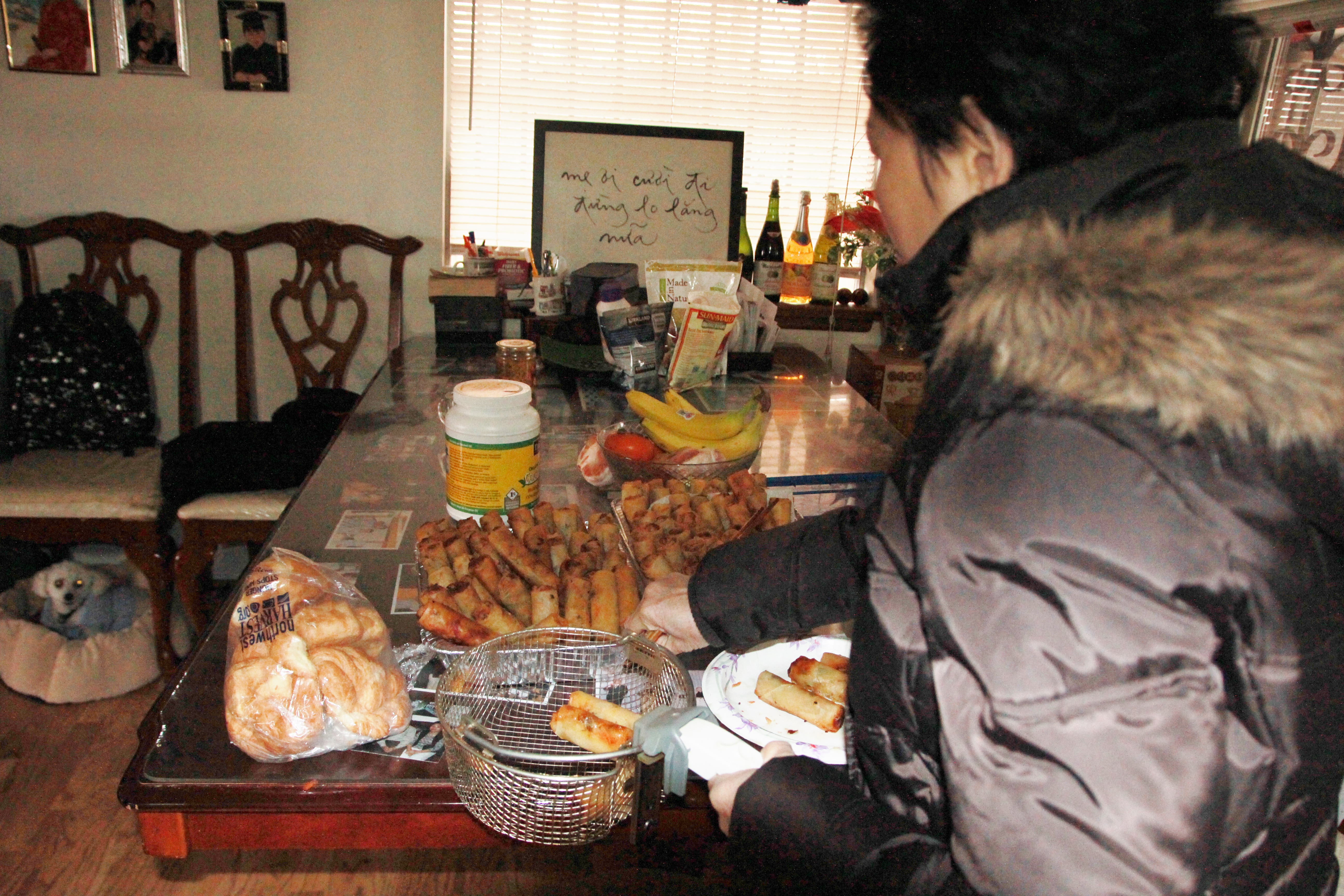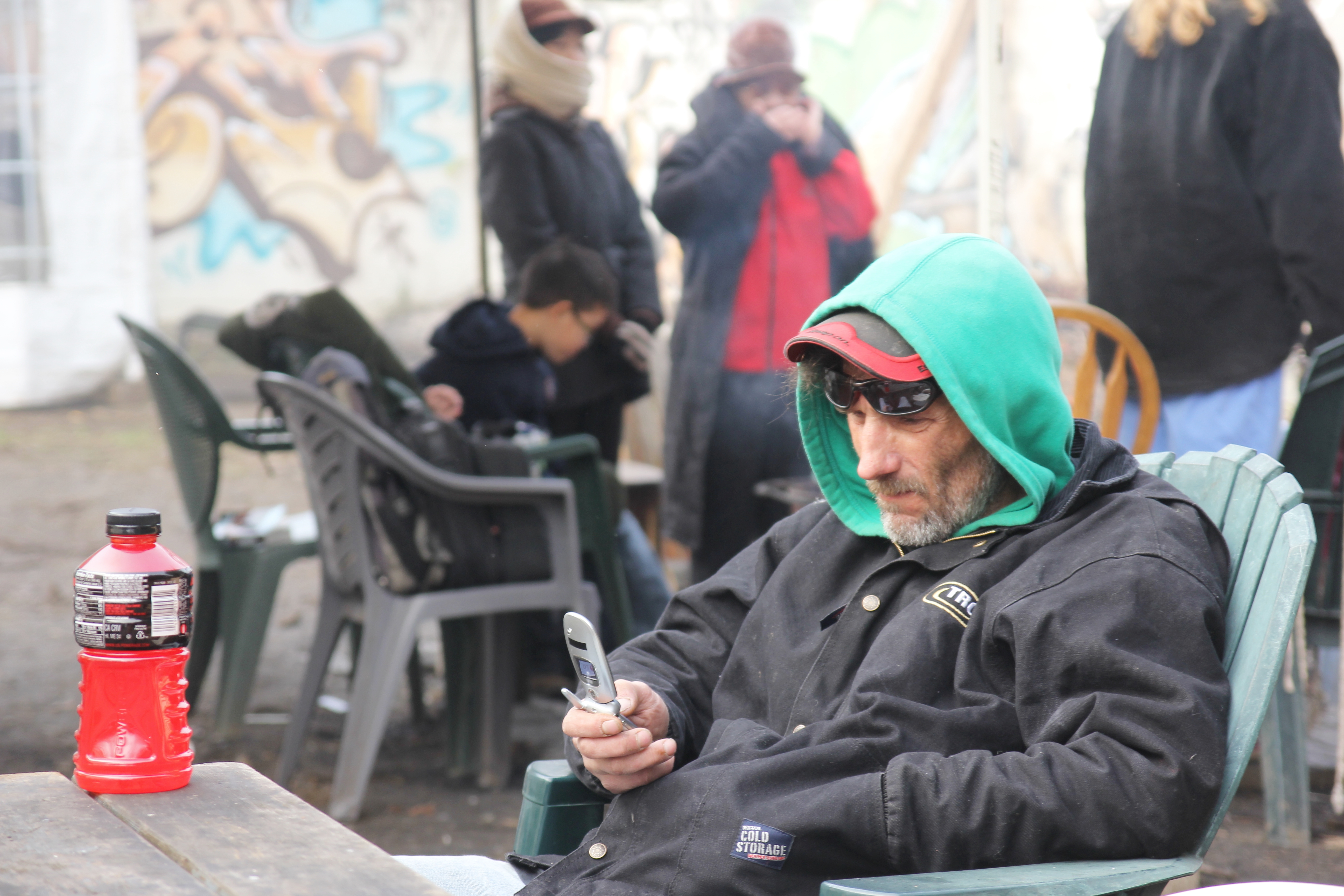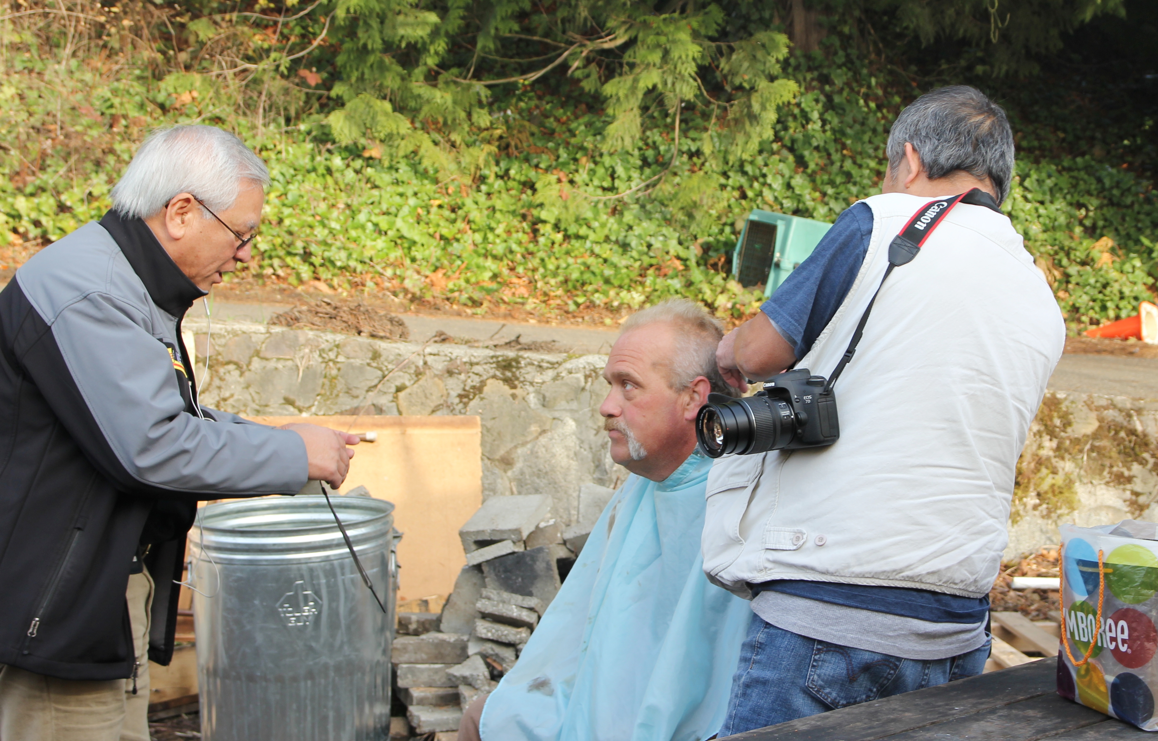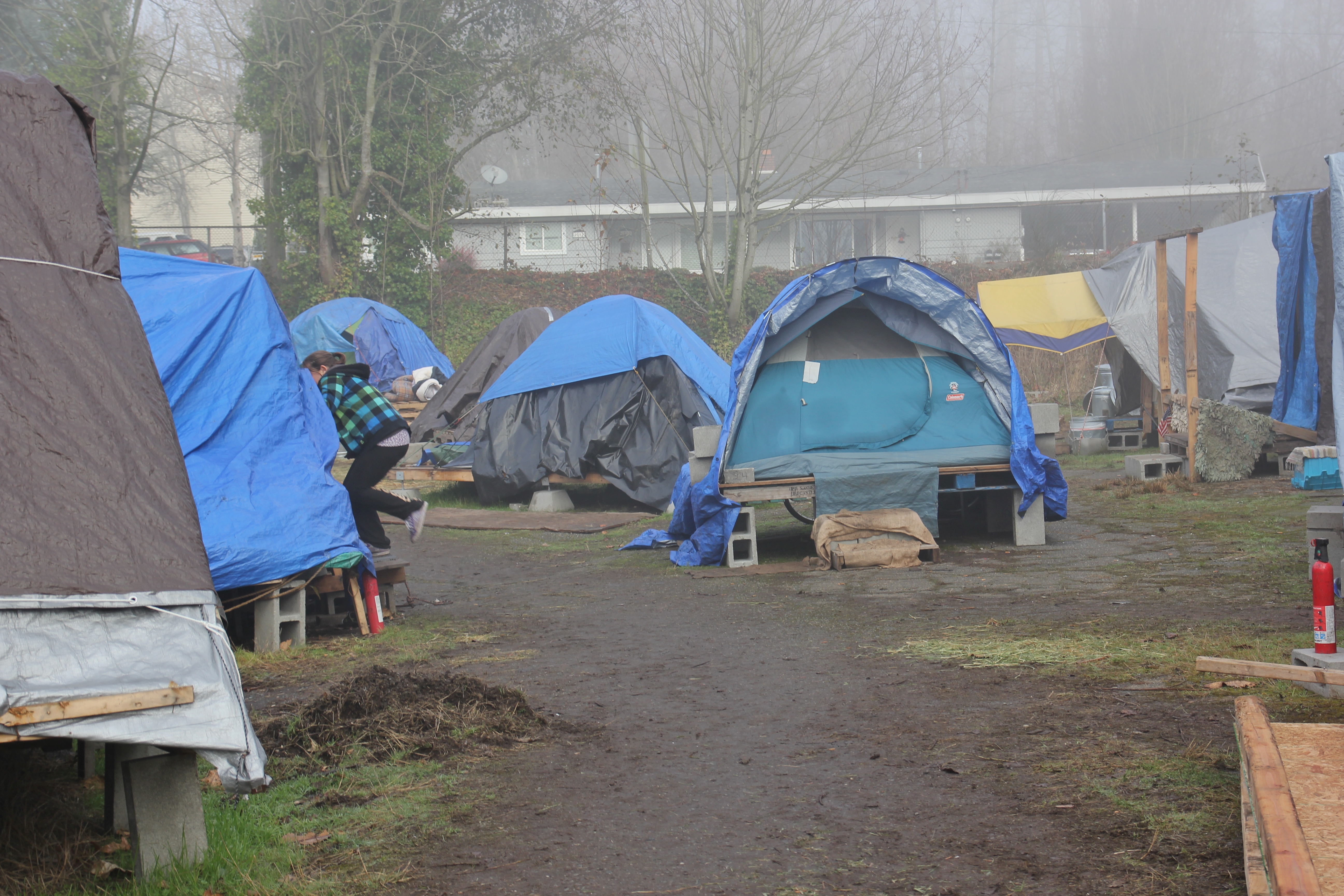 Hôm nay trời rất lạnh, sương mù che kín các túp lều thấp lè tè trên một miếng đất hẹp, chật chội, ẩm ướt. Nhìn vài tấm lều mình không thấy gì ngoài một tấm nệm và một tấm đắp, không điện đốm, không bếp nước. Tại nơi trung tâm có một thùng lớn họ đốt củi rồi thỉnh thoảng lại ngổi trên mấy cái ghế cũ kỷ bẩn thiểu để sưởi ấm. Trong đoàn có vài tình nguyện viên hớt tóc, tỉa râu cho người homeless. Món chã giò chay mà bà xã mình và người bạn hùn làm được chiếu có nhất, còn cơm thì có người thích người không. Thấy họ thật tội nghiệp, nếu mình ở trong hoàn cảnh nầy thì chết mất , không thể nào chịu được cái lạnh về đêm ở vùng Tây Bắc nầy. Bà con người Việt mình tới tham cũng đông, có người tới thăm cho biết , có người đem theo áo quần đố ấm, thức ăn khô…nhưng người nào cũng mặc hai ba lớp áo, trùm đầu mà còn run lập cập. Một anh bạn tâm sự ” Hồi tôi đi vượt biên, ở trong trại tỵ nạn sướng gấp trăm lần như thế nầy“. Mọi người đi thăm đều có chung cảm nghĩ: thay vì hoàn cảnh đó là của mình nếu còn sống ở Việt Nam. Bây giờ mình có cuộc sống tạm đủ và ấm cúng thì đất nước cưu mang chúng ta và tạo điều kiện cho con cháu chúng ta thành tài lại có những con người khốn khổ như thế nầy. Sáng nay có khoảng 30-40 cháu trong gia đình Phật tử Vạn Hạnh cùng tham dự. Chúng tôi muốn chỉ cho các cháu món ân tình mà cha mẹ các cháu đã mang, mong rằng các cháu đừng bao giờ quên và mỗi năm đến ngày Thanksgiving hảy cùng các cô chú bác, ông bà đi thăm các làng Homeless như thế nầy để chia xẽ nổi bất hạnh của những con người thiếu may mắn nầy.
