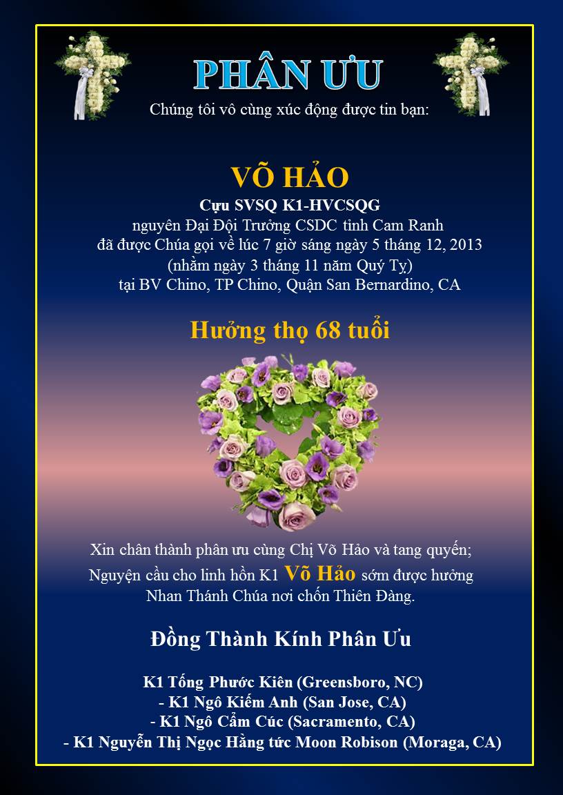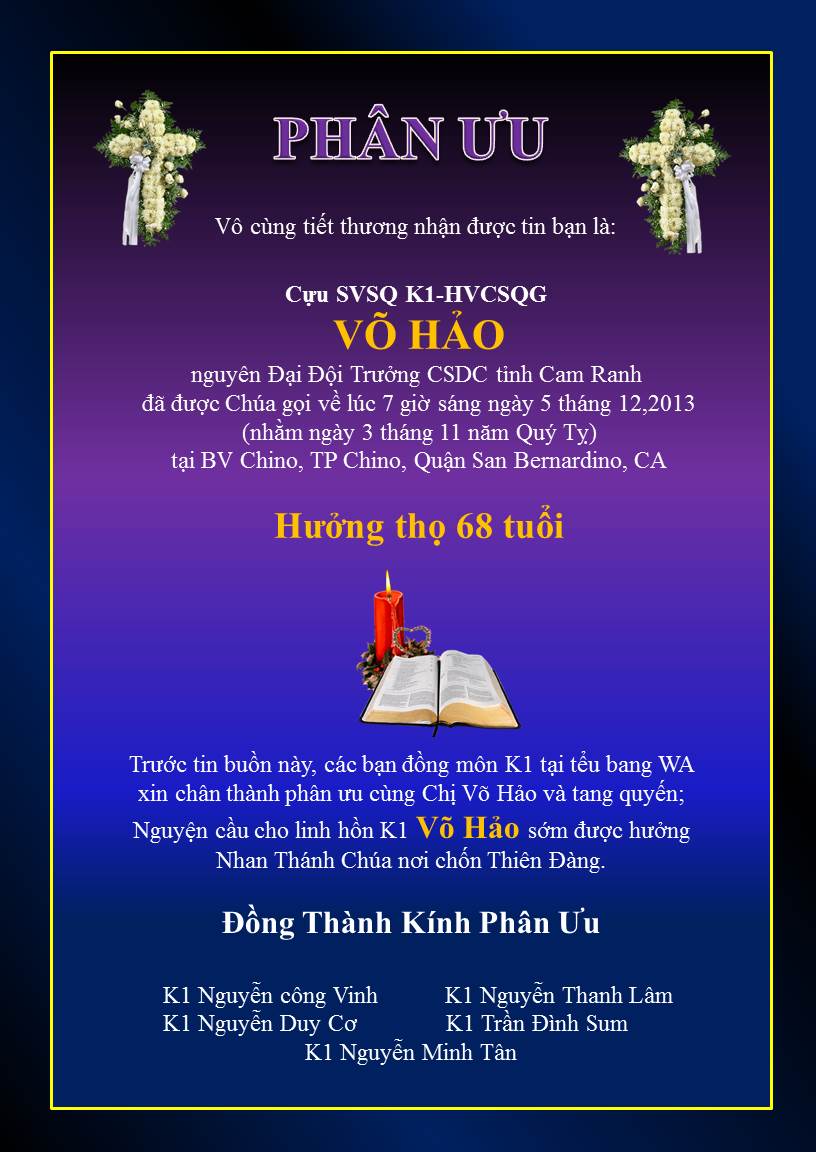 Gia đình K1 _Phân Ưu cùng gia đình Võ Hảo