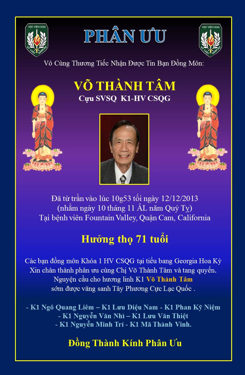 Điếu Văn Tiển Đưa K1 Võ Thành Tâm