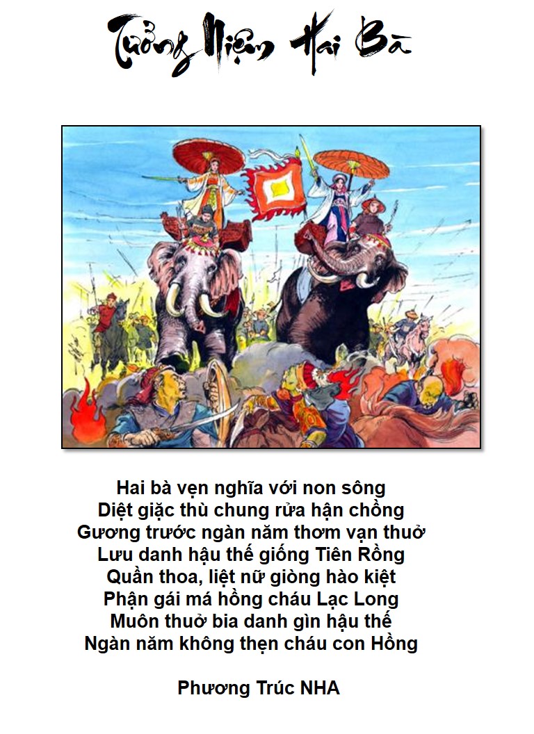 Nhân ngày tưởng niện hai Bà Trưng. Mình viết bài nầy như một nén hương muộn màng dâng lên các bậc tiền nhân, anh hùng có công  với đất nước.