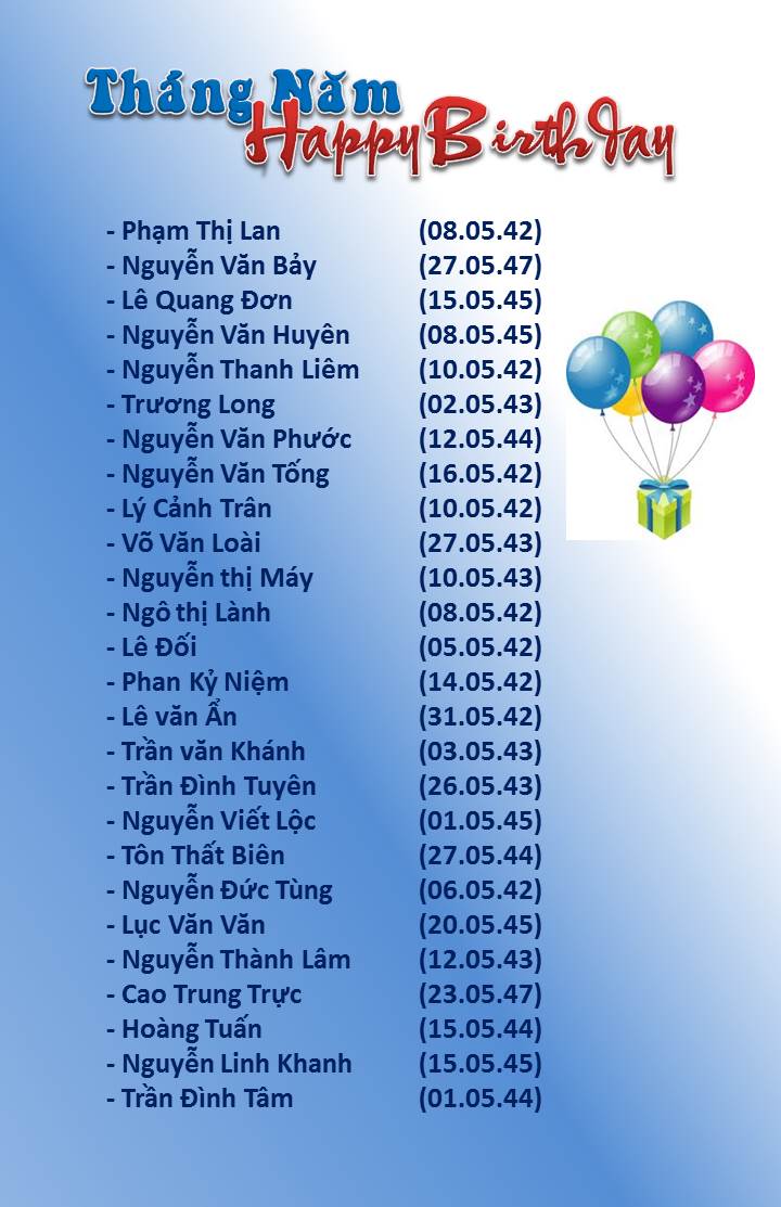 Mừng Sinh Nhật Tháng Năm