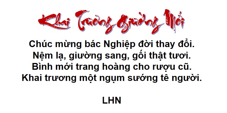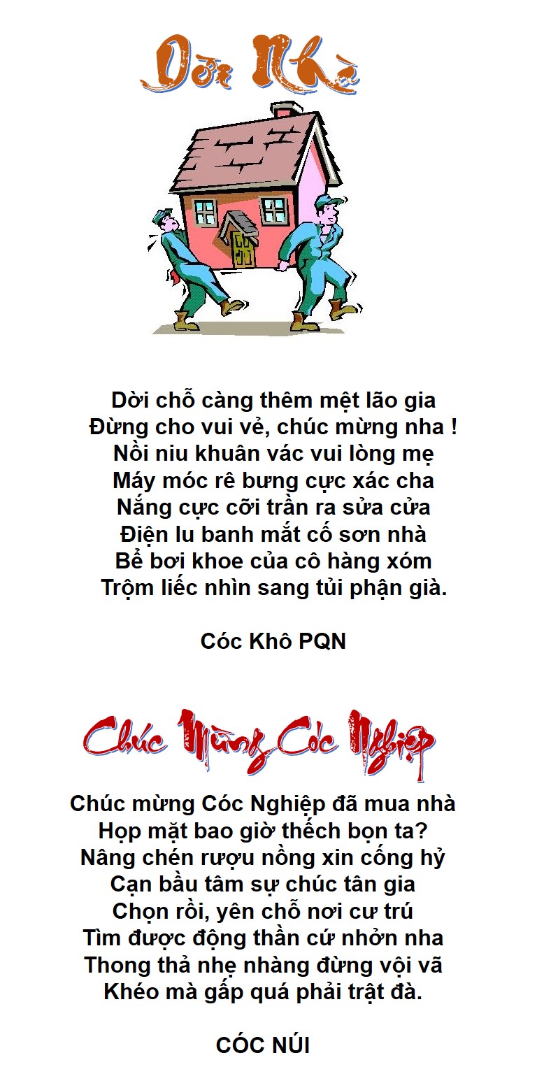 Nghe tin bác Cóc Khô PQN mới dọn về nhà mới, Cóc Xanh xin có bài thơ sau chúc mừng bác: