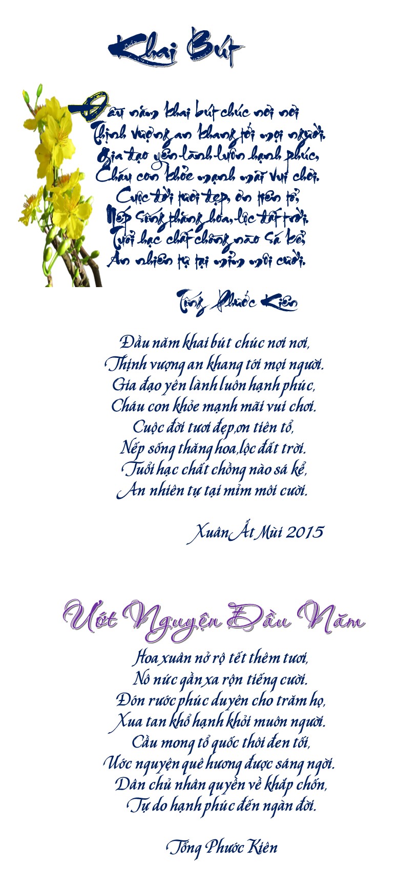 Mình xin báo một tin vui đến bạn TPK. Năm ngoái (mấy hôm trước) bài thơ “Nhớ Xuân Xưa” của bạn Tống Phước Kiện đã được layout và post lên CNN của chúng ta. Sau đó đã được một số thân hữu copy ra và luân chuyển đi khắp nơi, đặc biệt có một số blogger xử dụng để đăng cùng với các bài viết lên án Việt Cộng trong vụ thảm sát đồng bào ta trong dịp Tết Mậu Thân tại Huế. Bài thơ đó sẽ có tác dụng góp phần vào công cuộc chung đấu tranh giải trừ chế độ độc tài, gian ác của bè lũ Cộng sản Việt Nam.