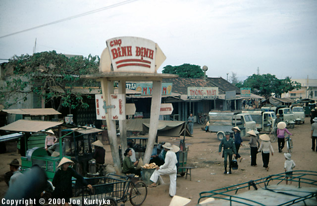 Tôi bước ngang qua mặt người đàn ông với một nụ cười. Nụ cười tôi đó …ông muốn hiểu sao cũng được. Ông ngước nhìn tôi rất vội, nét vô hồn. Ánh mắt Qui Nhơn tôi sau bao năm ngưng tiếng súng sao trông thảm đảm và buồn hiu hắt quá !