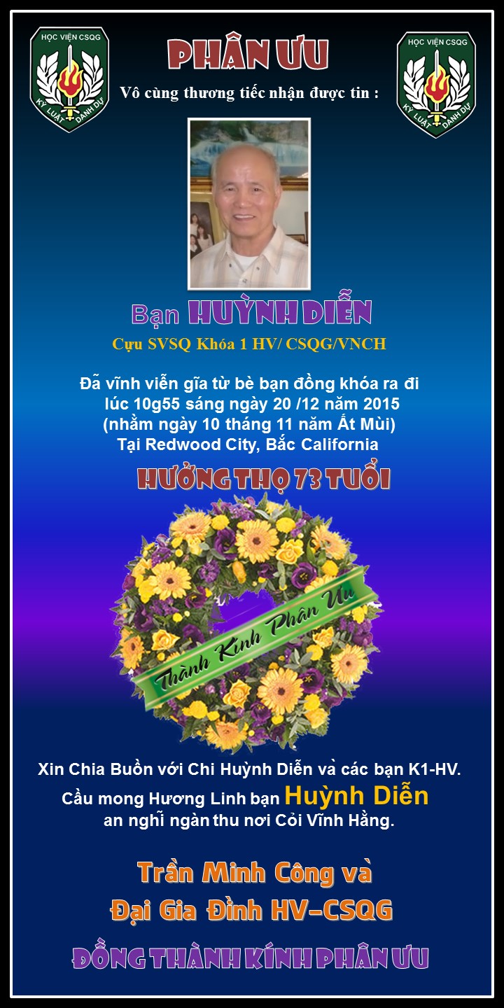 Các Phân Ưu gởi đến Gia đình K1 Huỳnh Diễn