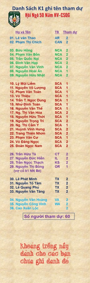 Dach sách k1 về dự 50 năm HV-CSQG