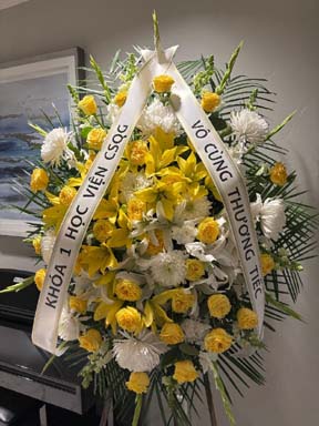 Vòng hoa Phân Ưu K1 Huỳnh Múi Nho của Khoá 1 Học Viện CSQG và Phái Đoàn Hội CSQG San Diego đến viếng tang ngày 03/1/2025: