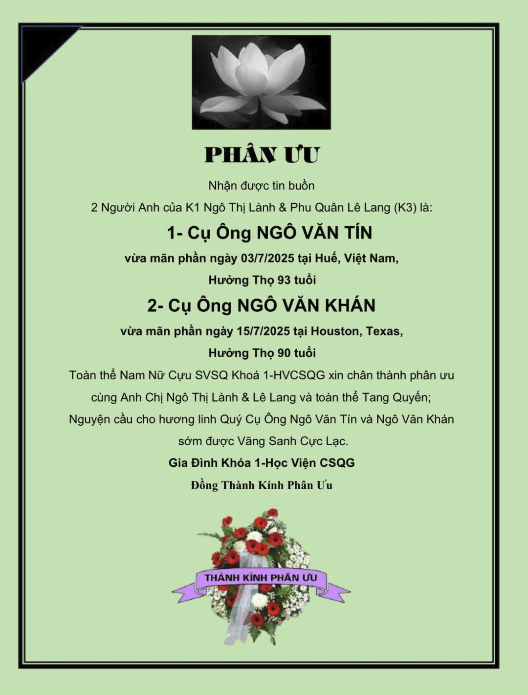 PHÂN ƯU 2 NGƯỜI ANH của K1 NGÔ THỊ LÀNH