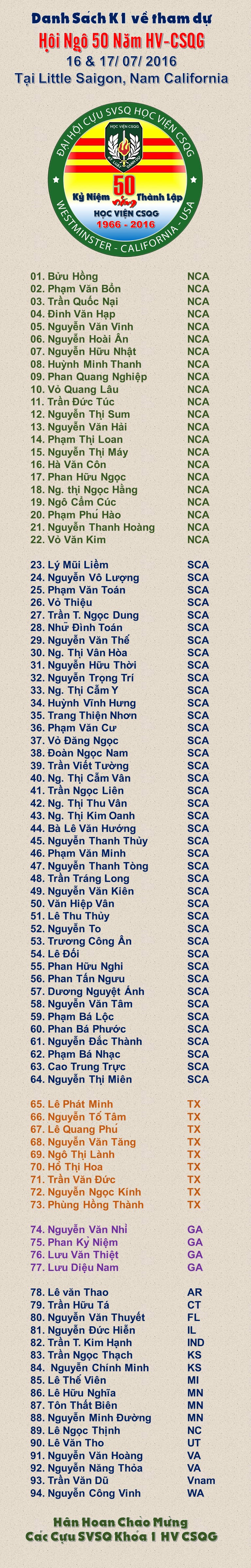 Dach sách k1 về dự 50 năm HV-CSQG